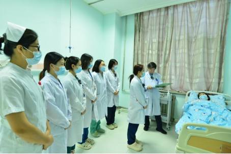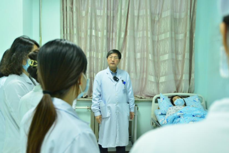 为着力培养医学生的临床思维能力,本着“以学生为中心”的教学理念,严格落实相关流程,在住院医师汇报病史、学生补充询问病史、进行术后重点查体操作后,谭文华教授就学生们的表现进行引导提问、归纳总结及点评,全面激活学生积极参与、主动思考的学习热情,并指出学生在问诊查体、医患沟通、人文关怀等方面需要在细节上加以改进。