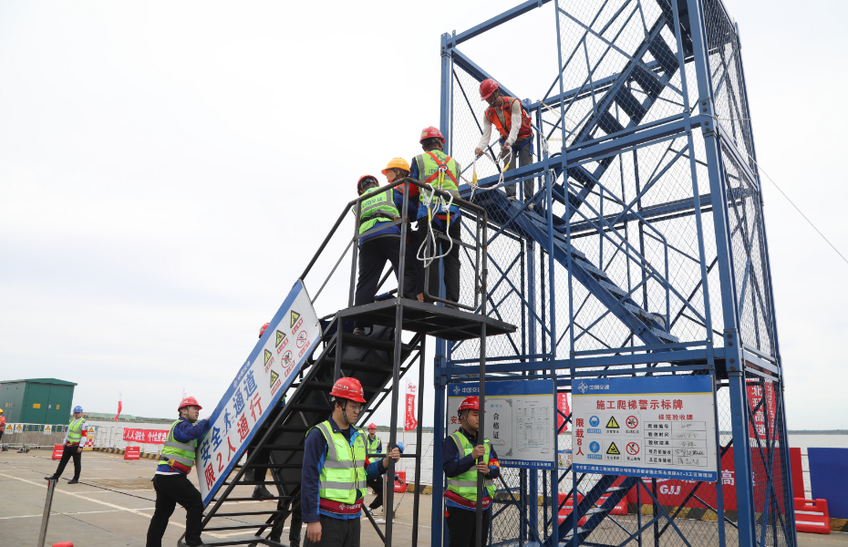 本次演练以中交二航局承建的松花江特大桥项目主墩安全梯笼附墙件排查作业为背景,模拟一名作业人员因“违反规程”不慎“踩空坠落”发生昏迷的应急处置工作。模拟“事故”发生后,项目部立即启动高处坠落应急救援预案,赶赴现场开展应急救援工作,在现场应急救援指挥部的统一调度下,工程抢险组、安全保卫组、综合协调组等6个小组分工明确、行动迅速,与属地医院密切配合、协调联动,高效完成各项应急救援工作并成功送医救治。