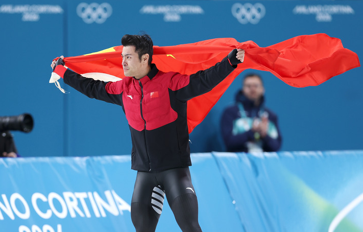 2026年2月19日宁忠岩在赛后庆祝。新华社记者 杜潇逸 摄