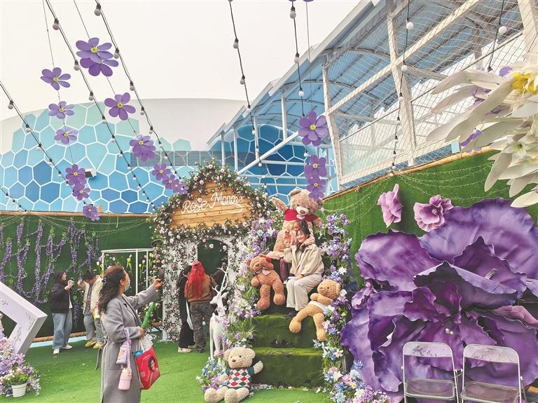 近日,记者在哈尔滨融创茂看到,这里率先打造了沉浸式春日消费场景,巨型蜜蜂装置漂浮于粉色芦海上空,搭配梦幻花房、神秘许愿树等浪漫元素,将打卡体验与商业消费深度融合,让市民在逛街购物的同时,邂逅治愈春日浪漫,随处可见游客驻足拍照、分享美景,现场氛围温馨又热闹。“商场的春日装饰太令人着迷了,处处弥漫着浪漫气息,让人忍不住就想进去拍照打卡。再看各大品牌橱窗里陈列的春装搭配,设计得那么亮眼,一下子又心动买了单。”市民李奇笑着说。